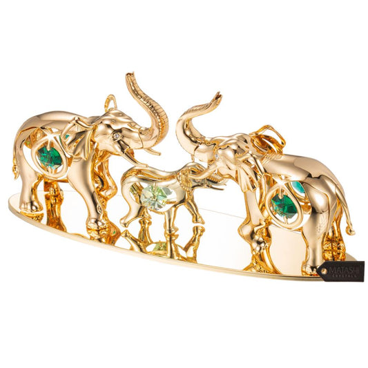 24K Gold Plated Crystal Studded Family of Elephants Ornaments